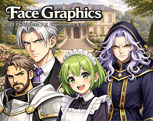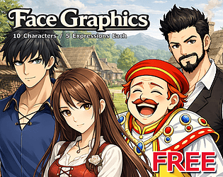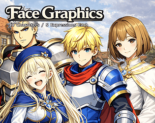 A collection of walking characters and facial graphics for 2DRPGs, intended for Non-Playable Characters.