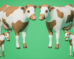 12 Cute Variations of Cows & Calfs including 33 Animations each - To add into your low poly or stylized game!