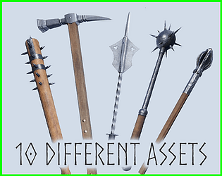 Contains High Quality Realistic medieval weapons assets: 10 Different types