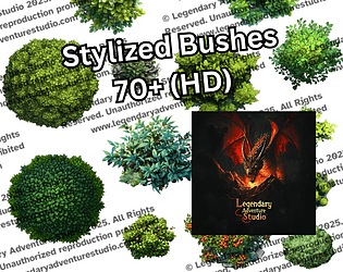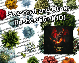 65+ stylized, seasonal fantasy bushes in PNG + Dungeondraft format for high-detail top-down mapmaking.
