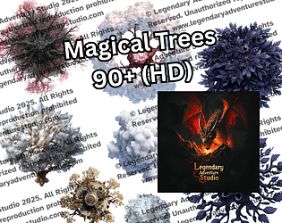 90+ magical tree tokens for fantasy maps — includes arcane, seasonal, and glowing variants. PNG + Dungeondraft pack.