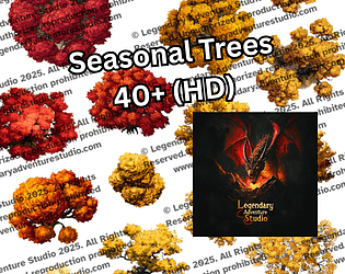 40+ vibrant autumn tree assets in PNG + Dungeondraft format for fantasy maps and seasonal biomes.