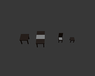 Classic wooden furniture set for taverns and inns. Includes Table, Chair, and Stool.