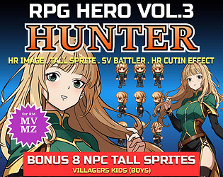 Premium RPG Female Hunter Character Asset Pack for RPG Maker MV and MZ