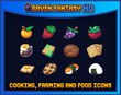 A colorful 16x16 pixel pack of tools and ingredients for cooking/farming games.