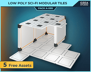 5 low-poly sci-fi modular tiles: walls and floors for building clean modular environments and prototypes.