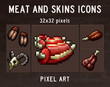 48 Meat and Skins Pixel Art Icons for your game projects