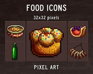 Iconset with 150+ food related icons for your games and projects! Fruits, vegetables, snacks, sweets, drinks and more!