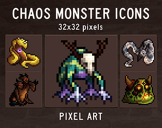 Free Pixlel Monsters 32×32 Icon Pack for your game projects