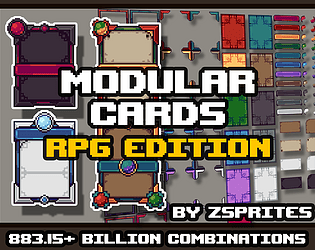 A modular RPG pixel card asset creation pack containing 883+ billion combinations.