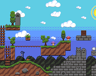 Contains a 16x16 pixel sprite tileset, various interactable elements and a parallaxing background with 2 layers.