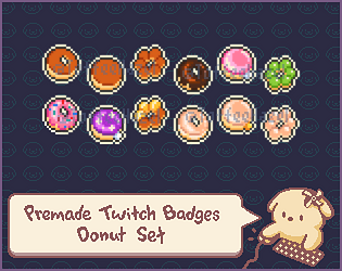 3 types of donut base design expanded into various decoration pixel art for twitch sub badges/bit badges.