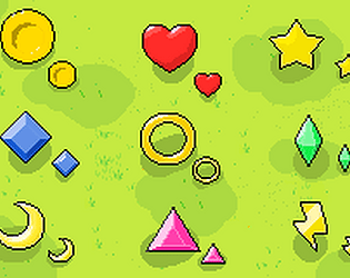 9 lovely animated bonuses: coin, heart, moon, ring, star, lightning and gems to use in your pixel art projets!