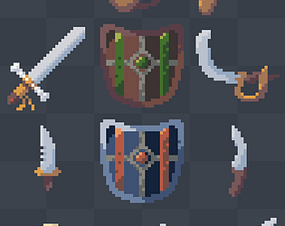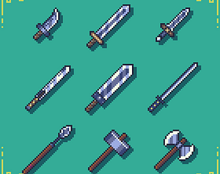 With this resource pack you will get 9 items 32x32 pixel art bladed weapons.