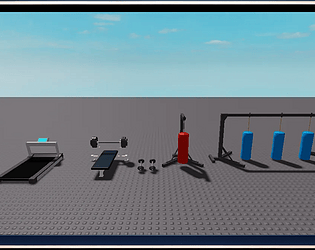 Detailed gym equipment collection designed for modern training environments and roleplay builds.