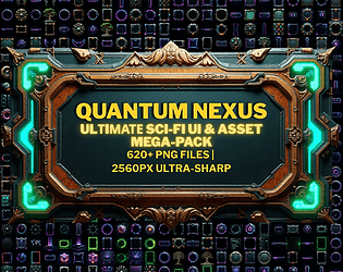 A massive collection of unique "Quantum Industrial" UI elements, panels, and game assets for advanced sci-fi projects