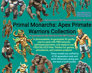Primal Monarchs 3D Character Pack – AI‑Generated Gorilla Warriors with PBR Textures