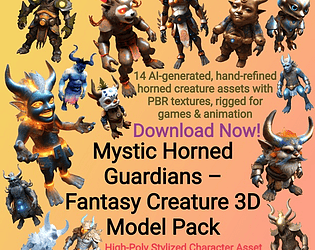Mystic Horned Guardians 3D Model Pack – AI‑Assisted Fantasy Creatures