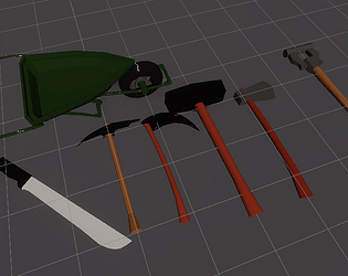 nine different tools/weapons ready to be used in games