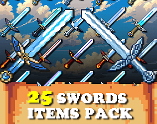 25+ Fantasy Swords Assets - Pixelart / Pixel Art sprite Equipment & Items Pack for RPG fantasy