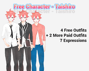 Male character sprite with 4 free outfits and 7 different expressions.
