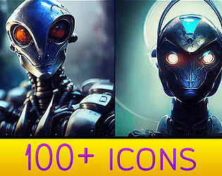 High quality 4k icons featuring classic sci-fi concept art looks, focused on robots