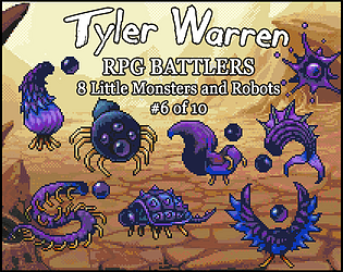 8 64x64 pixelart enemies with 3-4 variations, a total of 31 enemies!