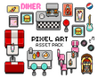 Collection of 40 bakery pixel art icons, 32x32 and 128x128 resolution