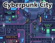 A huge 2D pixelart dark fantasy cyberpunk assetpack with animations, environmental and characters!