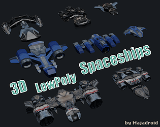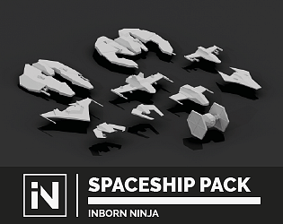 Asset pack with 14 spaceships, components and some accessories.