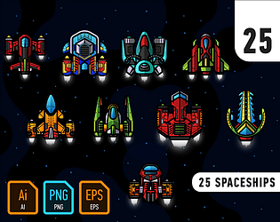 25 high-quality spaceships. This asset is perfect for a top-down game.