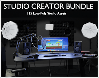 10 stylized low-poly studio props for streaming/podcast scenes (FREE).