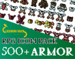 A 16x16, 32x32 and 64x64 beautiful armor and accessories icon pack for your game to use