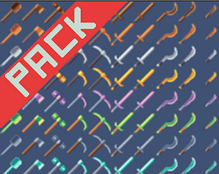 A downloadable asset pack with 25 unique pickaxes sprites!