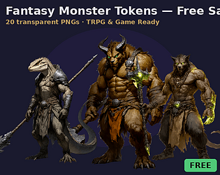 20 transparent monster tokens for TRPG, VTT & indie games. Free to use commercially.