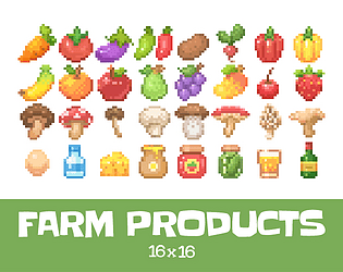 32 Free 16x16 Asset of : Fruits, Vegetables, Mushrooms, and Various Farm Products.