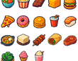Iconset with 150+ food related icons for your games and projects! Fruits, vegetables, snacks, sweets, drinks and more!