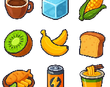 Foods icons pixel art 16x16 for RPG, Simulation, or whatever.