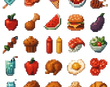 Hundreds of food icons, including fruit, meat, veg, dairy, sweets, meals and drinks.