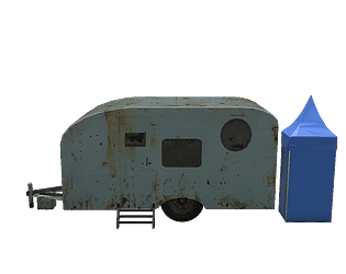 A cheap Placeable camper to sleep, change clothes, and call the vehicle shop to order things before you get there