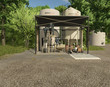 A simple british style machinery shed with single door from Oak Bridge Farm for FS25