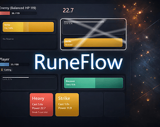 A real-time casting card battler. Drag cards into cast lanes, survive interruptions, and build your run.