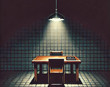 Two men sitting in a bar talking about their lives in a cyberpunk-inspired setting.