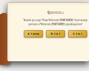 A Biblical Unitarian, Torah Observant, Bible based religious quiz game.