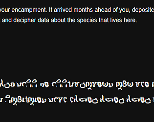 A work in progress. Collect data on an alien plant, decipher the lifeforms language, and their plans.