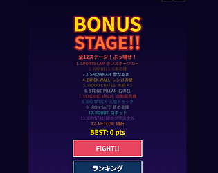 Street Fighter風!12ステージの物を全部タップして破壊せよ!