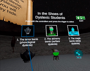 The Dyslexia VR is a VR serious game that makes players experience dyslexia by a short scene.