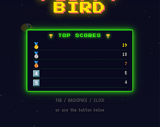 A Flappy Bird-style arcade game with increasing difficulty and online leaderboard.