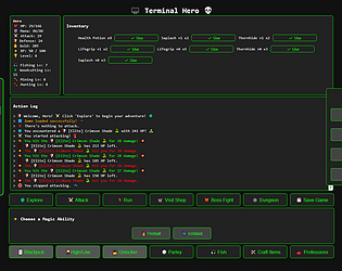 Browser Text RPG where you battle foes, craft, gamble, unlock magic & professions, and conquer dungeons.