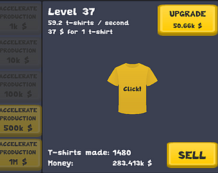 Idle clicker game - prototype, where you make t-shirts and sell them